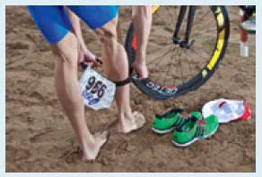 не сбить ноги. Правда, элитные триатлеты на олимпийской дистанции этого не делают.15. Если по правилам вам предстоит использовать номер на резинке, положите его под переднее колесо или повесьте на руль, растянув резинку между тормозными ручками.