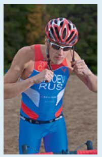 9. Наденьте резинку с номером (на велоэтапе он должен быть сзади), если она лежит на земле. Если номер располагается на тормозных ручках, то сначала наденьте шлем.