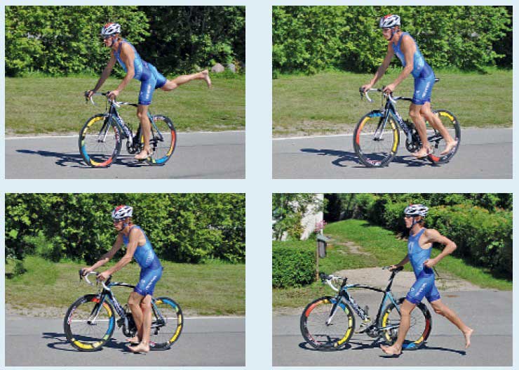 12. Аккуратно возьмите свой велосипед и, держа его одной рукой за руль (или за седло), начинайте бежать к линии посадки на велосипед.