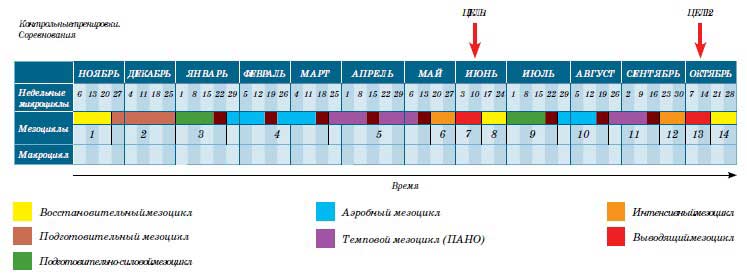 В предыдущей главе вы узнали, как грамотно разложить свою подготовку в течение года. Выделите основные цели, определите длительность макроцикла относительно каждой цели, установите очередность и продолжительность мезоциклов, его составляющих. Напомним, что мезоцикл — это такая часть макроцикла, которая обеспечивает качественное увеличение уровня тренированности определенных качеств (например, уровня аэробной выносливости или работоспособности на уровне ПАНО). В этой главе мы ответим на следующие вопросы: