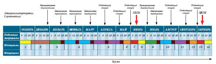 По завершении каждого мезоцикла (за исключением подготовительного) желательно принимать участие в контрольном соревновании. В качестве контрольных стартов могут выступать состязания на легкоатлетических дистанциях 5–21 км, на дистанциях