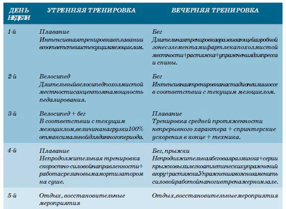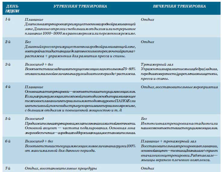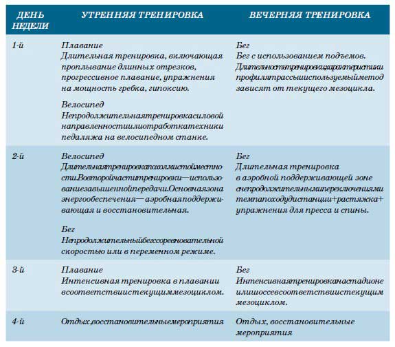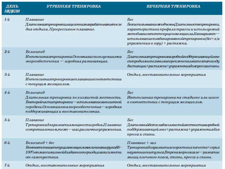 Более короткие микроциклы используются при повышении интенсивности в темповом и интенсивном мезоциклах, а также на всем протяжении годовой подготовки профессиональных триатлетов. Более короткий микроцикл позволяет делать более тяжелые тренировки, обладающие большим стимулирующим эффектом, и одновременно учит ваш организм восстанавливаться.
