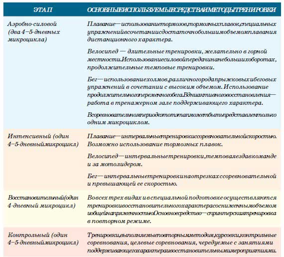 Каждый микроцикл соответствующего этапа по своей структуре соответствует тем, что были описаны в главе, посвященной микроциклам.