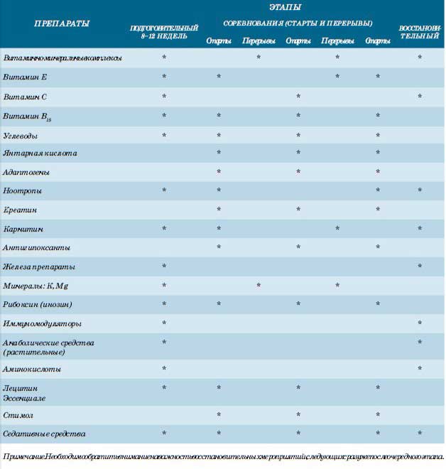 Ниже приведена табл. 4.4, демонстрирующая фармакологическое обеспечение стартов на этапах кубковых соревнований. Отметим, что на полное восстановление физических кондиций после соревнований требуются 5–7 суток.