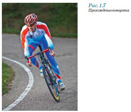2. Поднимите ногу в сторону, соответствующую направлению поворота, противоположной ногой давите вниз на педаль. Например, вы заезжаете в правый вираж. Ваша правая нога должна быть поднята, а левая — давить вниз на педаль (рис. 1.7). Это сделает ваш велосипед более устойчивым во время наклона.