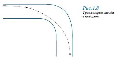 3. Всегда заезжайте в вираж с большого радиуса на маленький (рис. 1.8). Это позволит сохранить скорость и безопасно пройти поворот.