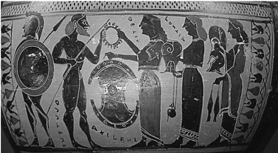 Неразрешимая проблема остается только с Диомедом. Мы можем предположить, что схватка была остановлена не только потому, что Аякс едва смог избежать удара копьем в горло, но также и потому, что Диомед уже не мог продолжать поединок из-за еще не прошедшего ранения.