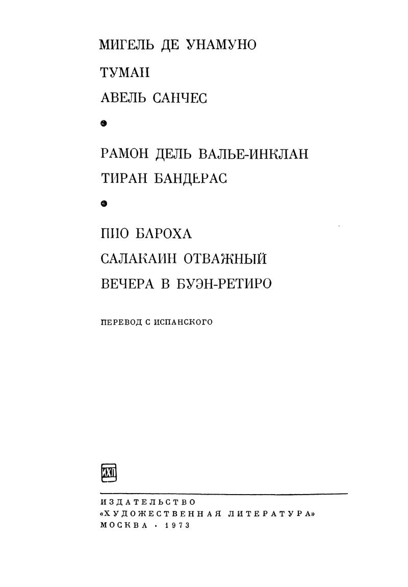 Туман. Авель Санчес; Тиран Бандерас; Салакаин отважный. Вечера в Буэн-Ретиро