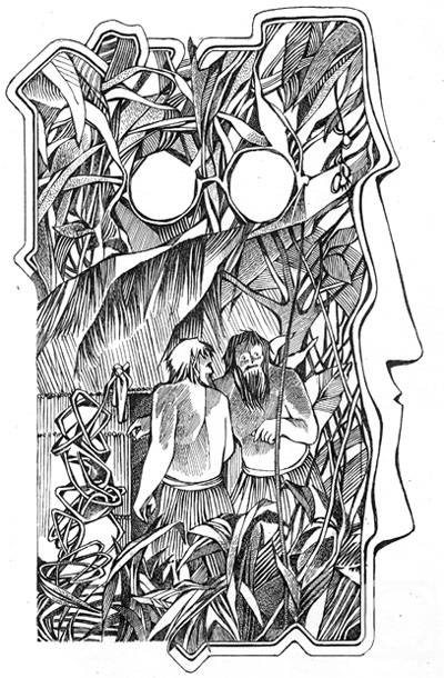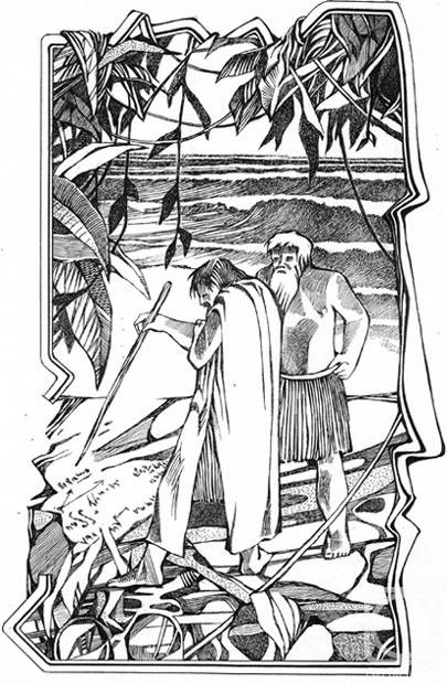 На нём была «рура» — этакая простыня из тапы [5] с прорезью для головы, а в руке он держал тростинку. Вылитый Архимед, если бы не головной убор из носового платка, завязанного по углам на узелки.