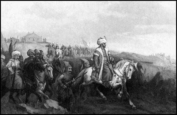 на очень мощной армии, на эффективном аппарате государственного управления и подавления, необходимом для общества весьма разнородного как по этническому и конфессиональному признаку, так и по уровню социального и экономического развития. К началу XVI в. османские власти контролировали всю Анатолию, по которой пролегал шелковый путь из Азии в Европу и по которому везли дорогостоящие пряности и предметы роскоши. Путь начинался в Сирии, в Алеппо, и через Конью, Кютахью, Бурсу выводил к побережью Эгейского моря. Торговля увеличивала таможенные сборы, приносила казне большие средства.Османское войско возвращается с победой