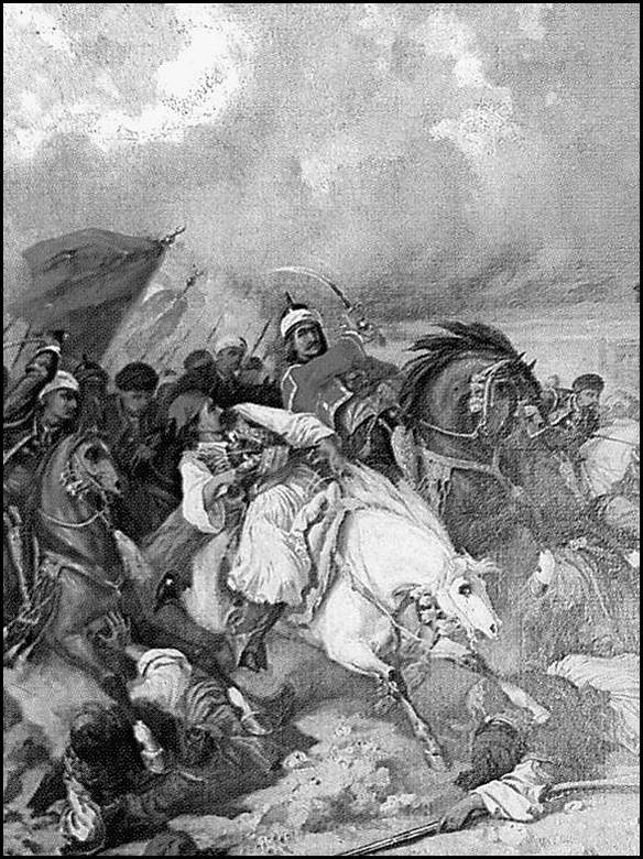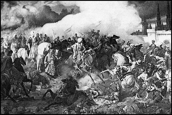 Нет! Не с ума сошел Муратов сын, Ошибся ты, хромец надменный: Но он взревел, как вольный лев долин, Узнав, что в мире есть еще один, Что дерзких двое во вселенной. И степи дрогнули под звон копыт, И шум от сшибки замер в небе. Покой пустыни воплями был сыт, Багряной кровью сумрак был залит, И верен был случайный жребий.Армия османского султана была разгромлена под Анкарой в 1402 г., а сам монарх и два его сына оказались в плену. Тимур опустошил Малую Азию, но недолго пробыл на ее территории и в 1405 г. вернулся в Среднюю Азию.