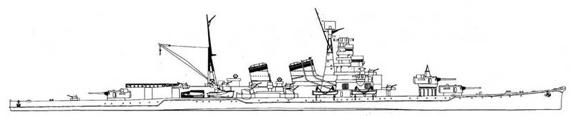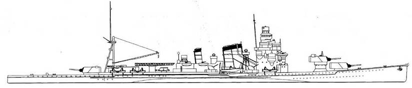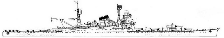 Развитие японских тяжелых крейсеров, профили представлены в одном масштабе.