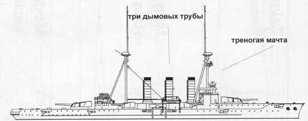 Усовершенствованный вариант крейсера типа «Цукуба» — крейсер «Карума» с треногими мачтами, которые обычно ассоциируются с линкорами дредноутского типа.