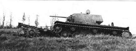 Танк КВ-1 с катковым минным тралом из состава 26-го гвардейского танкового полка прорыва. Ленинградский фронт, Карельский перешеек, лето 1944 года.