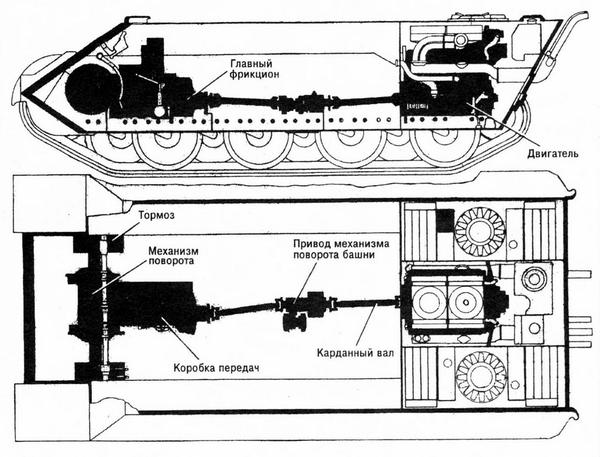 Приводы управления танком — комбинированные, с гидросервоприводом следящего действия с механической обратной связью.
