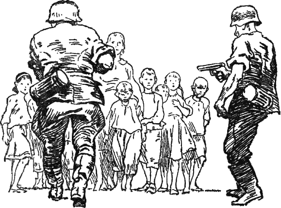 – Шнеллер, шнеллер, бистро! – закричал фашист. Ксения Андреевна шагнула вперед прямо на немца и прикрыла собой ребят.