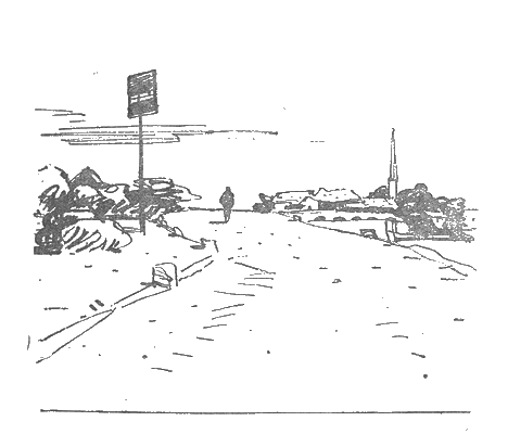 По обеим сторонам каменистой дороги — массивные тумбы из мягкого известняка. Источенные, изношенные временем, они стоят, точно быки подъемного моста. Но моста нет, а вместо рва — узенькая канавка. И колеи, и обочины дороги имеют жалкий, заброшенный вид. Все безлико, серо, нельзя определить ни времени, ни места. Что сейчас, весна или зима? Да, сейчас март…