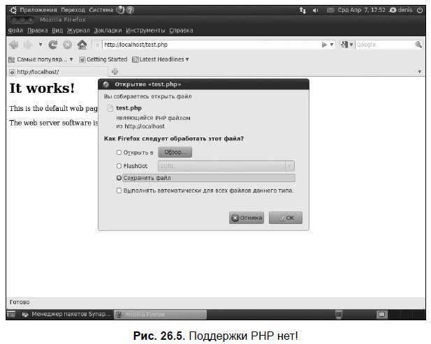 Скорее всего (если вы после установки Apache не перезагружали компьютер), увидите картинку из серии «не ждали» (рис. 26.5).