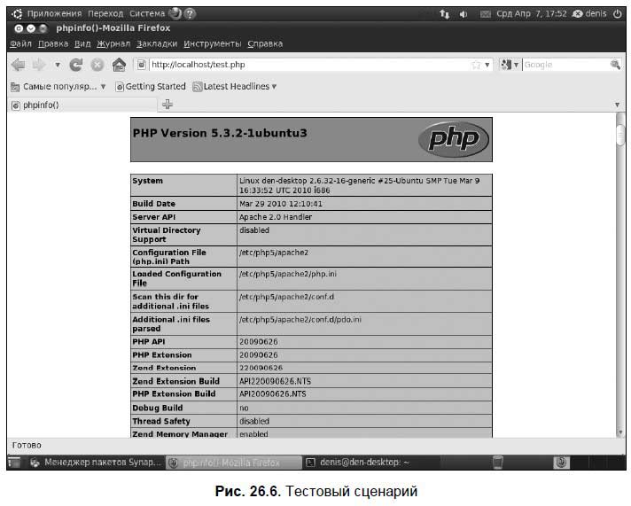 Да, теперь и в Ubuntu есть команда service! После этого в окне браузера вы должны увидеть информацию о своем сервере и PHP (рис. 26.6).