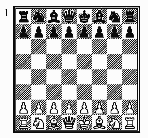 Как легко убедиться, фигуры располагают симметрично, одни против других. Слева направо мы имеем: ладью, коня, слона, ферзя, короля, слона, коня и ладью. Перед каждой из этих фигур стоит по пешке. Партию начинает играющий белыми фигурами. Ходы делают поочередно.