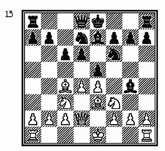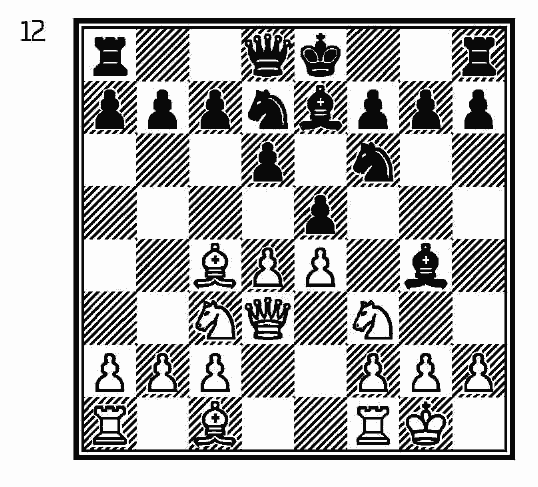 Если эти условия соблюдены, ладью придвигают вплотную к королю, а короля, как показано на следующей диаграмме – 12, ставят с другой стороны от ладьи.