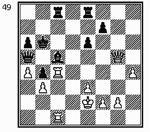Одним словом, положение черных стесненное. Если бы ход был за черными, они могли бы значительно облегчить свое положение, сыграв с6-с5, переходя тем самым в атаку. После указанного хода грозило бы