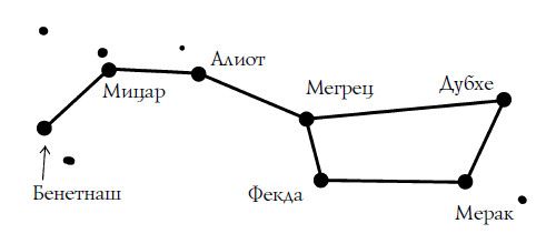 «Сверкающая колесница Вселенского закона» — Медведица, Ковш, Стожары, Повозка — «Ursa Major», единственное созвездие, имеющее множество самых различных названий и с детства знакомое абсолютно каждому, кто вырос в северных широтах Земли! Так не генетическая ли память, хранящая традиции древних ариев, по сей день устремляет взоры всех «урусов» — «детей Большой Медведицы» к небесному отблеску ее звезд, пробуждая воспоминания о далекой прародине предков и устанавливая тем самым связующую нить времен и поколений?!