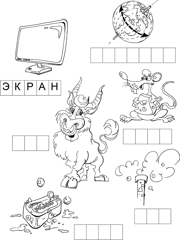 1. Показываем на изображение предмета и просим ребенка назвать (экран, экватор, бык, мышь, мыло, дым).