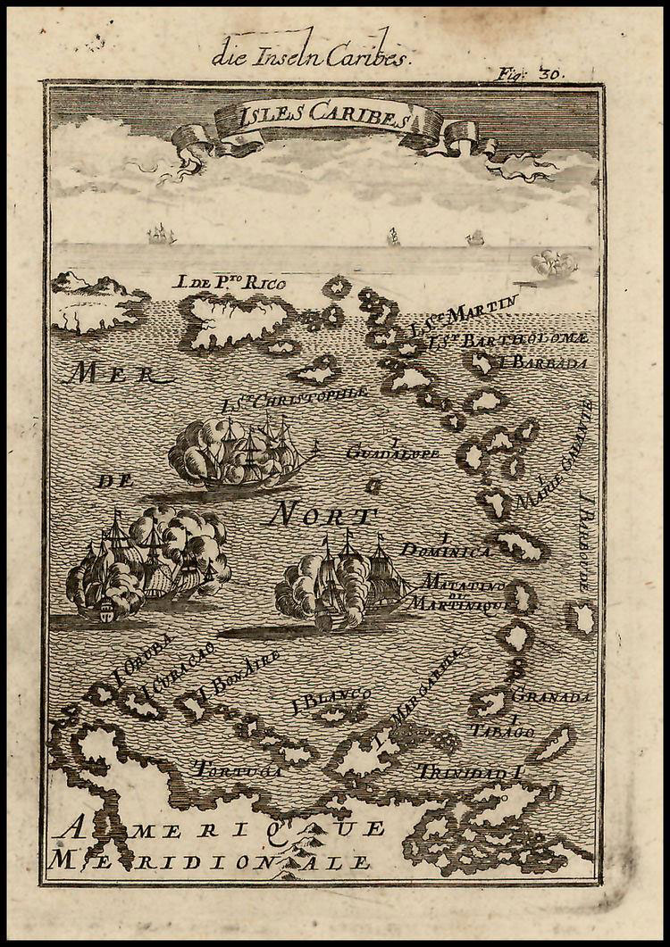 Старинная карта Малых Антильских островов и побережья Венесуэлы.