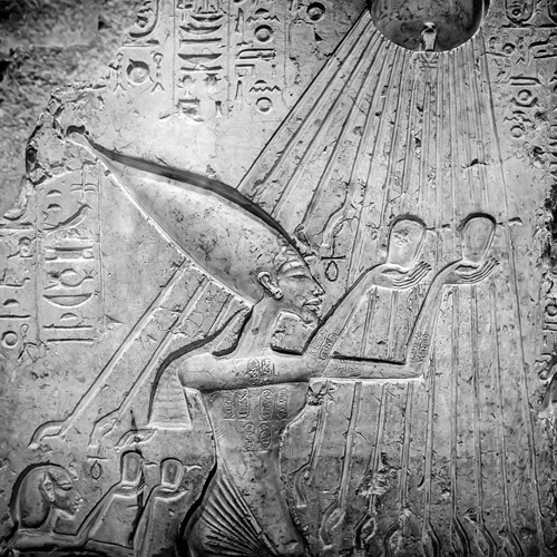 Эхнатон и Нефертити жили, видимо, хорошо. Ежедневно с восходом солнца начиналось богослужение, таково было строгое правило. Ни на одном изображении мы не увидели Эхнатона карающего, кого-нибудь вешающего, кого-нибудь бичующего. У прежних фараонов это было. А он – на колеснице с Нефертити, с детьми, и везде его сопровождает солнце… Солнце изображалось как диск с длинными лучами, кончики лучей – это ладони, которые ласково тянутся к людям.