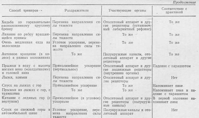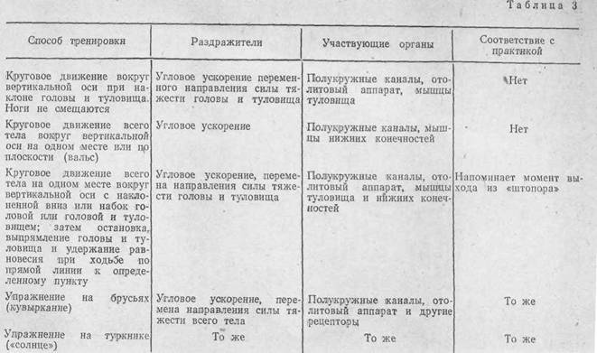 Для активной тренировки пилотов и лиц, занимающихся авиационными военно-прикладными видами спорта, можно рекомендовать комплекс активной вестибулярной гимнастики, приведенной в табл. 3.