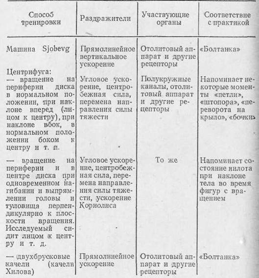 Для пассивной тренировки применяются различные стенды, а способы тренировки летного состава приведены в табл. 4.