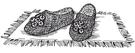 Домашние тапочки можно связать спицами, а затем украсить пуговицами, пришив их спереди в виде сердечка (рис. 82). Вместо пуговиц допустимо использовать декоративную тесьму или бантики.