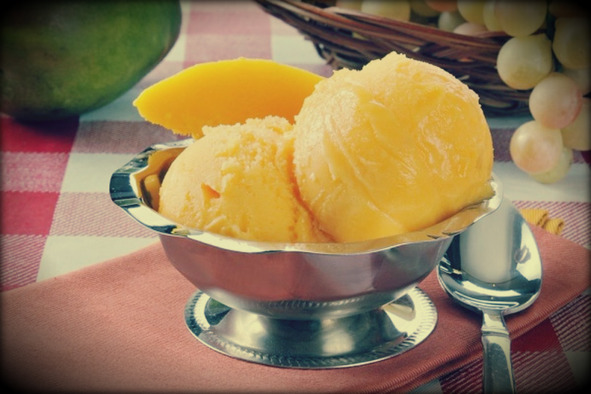 – С помощью блендера или кухонного комбайна превратить мякоть манго в пюре. Добавить сок лайма, золотой сироп и текилу. Тщательно перемешать, перелить в формочку или стакан, а затем поместить в морозильник на несколько часов или на ночь.