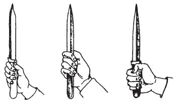 Нож также незаменим как оружие ближнего боя. Неожиданно выхватив нож, нанесите тычковый удар противнику. Старайтесь избегать ударов наотмашь и сверху. Опытный противник легко поставит блок и ударит вас в незащищенный в этот момент корпус. Чтобы отвлечь противника, левой рукой наносите удары в нижнюю часть корпуса – живот и пах. Самыми уязвимыми местами являются артерии и вены. С поврежденными венами на запястье человек уже через 30 секунд теряет сознание. Такие же последствия вызывает повреждение кровеносных сосудов в области локтя, подмышки или под коленом.