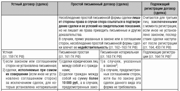 Договор – это не обязательно документ с соответствующей надписью и подписями обеих сторон. Закон допускает возможность заключения договора в устной форме, а в подтверждение договора, заключаемого в письменной форме, но не оформленного таким образом, могут быть использованы письменные доказательства (письма, расписки, платежные документы и пр.). Кроме того, очень часто договоры заключаются путем подписания одной стороной заявления (бланка заказа и т. п. документа), выражающего согласие на заключение договора в соответствии с типовыми условиями, разработанными второй стороной (см. табл. 2).