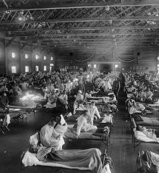 Испанский грипп или «испанка» – общепринятое название гриппа во время масштабной пандемии, продолжавшейся с 1918 по 1920 год. Считается, что развитию пандемии способствовали тяготы военного времени – антисанитария, плохое питание, скученность людей в военных лагерях и лагерях беженцев. Было заражено более 500 миллионов человек (треть населения планеты в то время), умерли, по разным оценкам, от 12 до 50 миллионов.