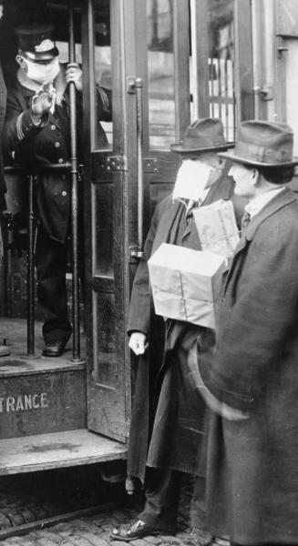 Кондуктор запрещает вход пассажиру без маски в Сиэтле. Госпиталь для больных «испанкой» в Канзасе.