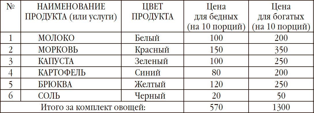 2. Овощи продаются лишь лицам, имеющим соответствующие лицензии и по твердой цене. Они же могут продавать овощи далее по любой цене. Купленные овощи и кастрюли обратно иностранным государством не покупаются, а принимаются по окончании Игры бесплатно (как реквизит для последующих Игр).