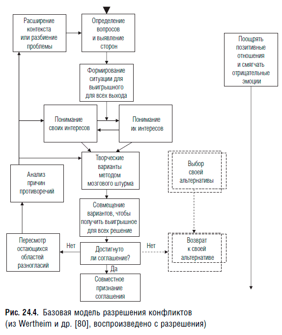 Пример этого описан у Грея (Gray) {21}, где разъясняется «кооперативный» подход к многостороннему разрешению конфликтов. Этот подход направлен на изучение различий между заинтересованными сторонами по конкретному вопросу, чтобы выработать новые решения проблемы. Среди прочего для применения такого кооперативного подхода к разрешению конфликтов нужно:
