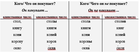 Внимание! Винительный падеж меняется на родительный падеж, если
