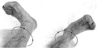 2. Поворачивайте ступни круговыми движениями наружу. Колени неподвижны, все движение идет из лодыжек, не просто вращения носками!