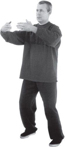 Точно так же, положив руки на даньтянь, можно стоять на подсог-нутых ногах, чуть-чуть или полностью прикрыв глаза, но это относится уже к практике стояния «столбом» для собирания Ци.