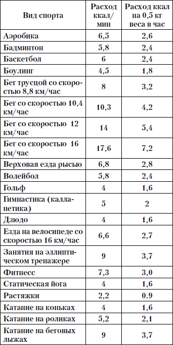 Для того, чтобы вы были во всеоружии, мы приводим ниже таблицу расхода калорий при различных занятиях спортом. Различные вид фитнеса попадают в категорию аэробика, поскольку заставляют работать наши мышцы с максимальной эффективностью. Мы включили в таблицу также и другие виды спорта, чтобы вы понимали, какой эффект можете получить от игры в боулинг или, даже, от отдыха за компьютером.