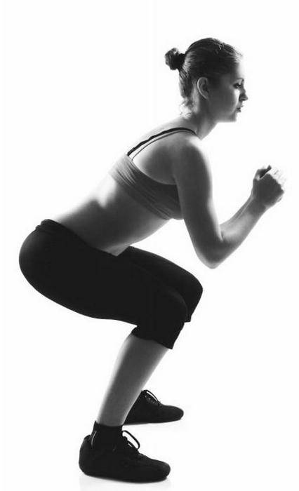 По технике исполнения упражнение похоже на полуприседание – расставив ноги и, уперев руки в бедра, вы медленно приседаете на максимально возможную глубину.В