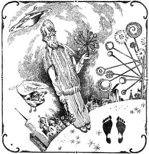 Пришелец наклонил голову, разглядывая Конструкцию. Потом взгляд его упал на профессора Минца, который вытащил из кармана маленькую модель Конструкции, что должна была совершить переворот в швейном деле.