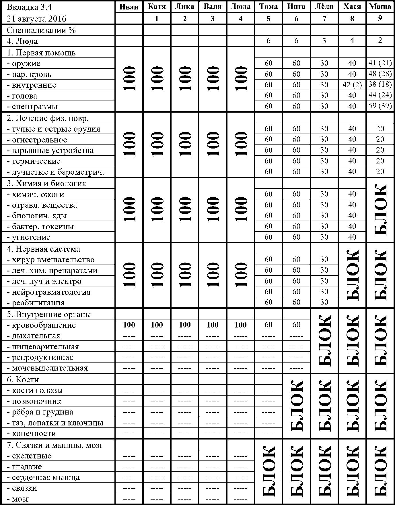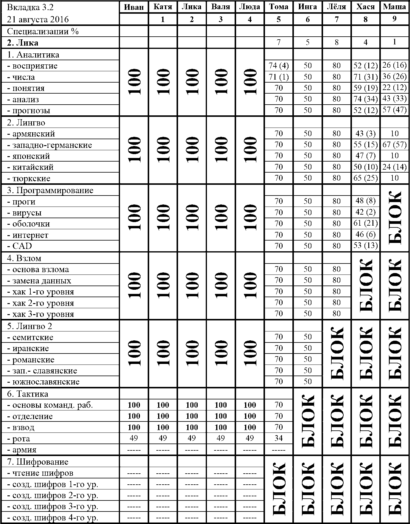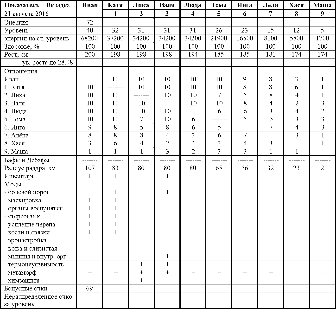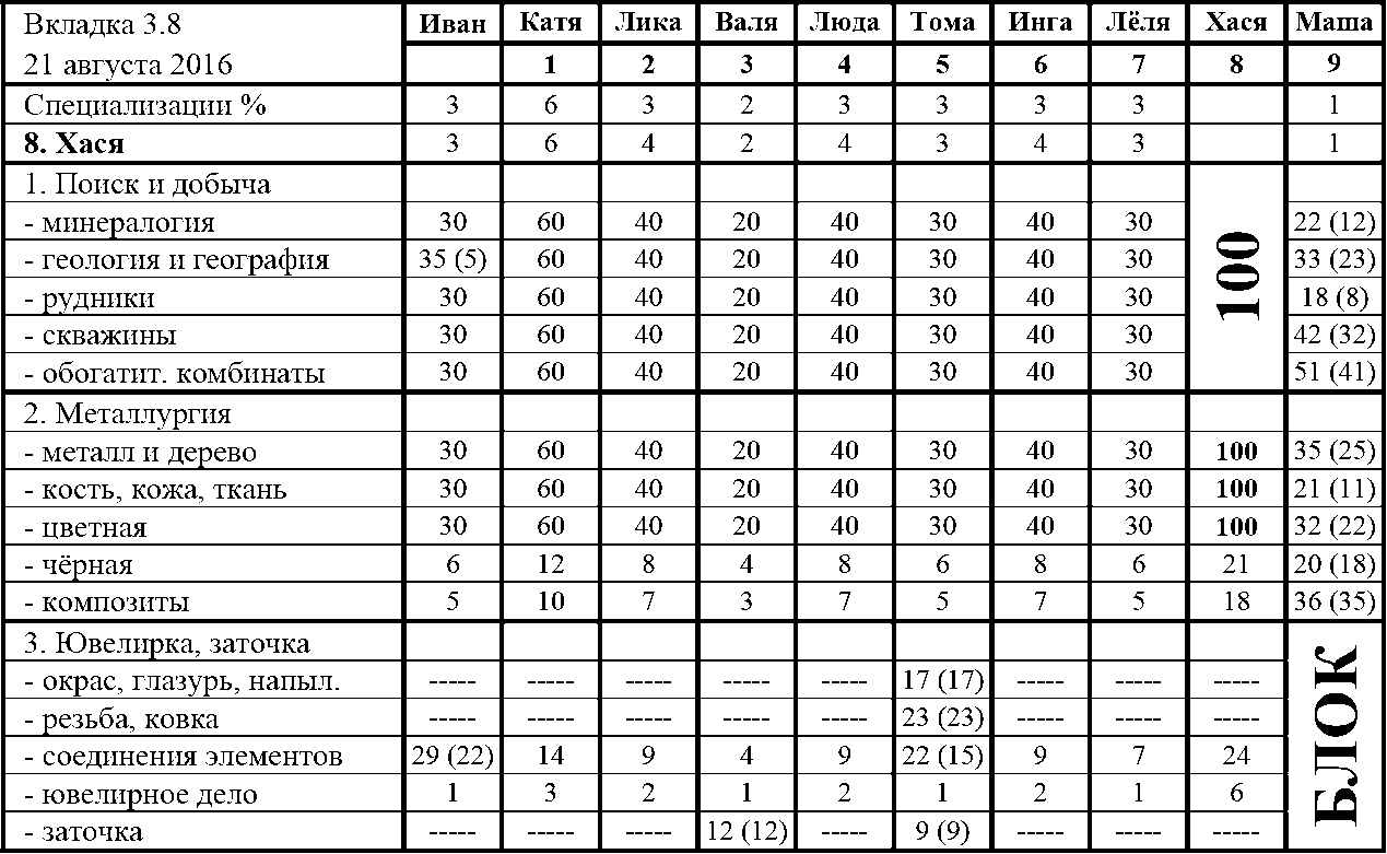 Все жёны развивали свои Специализации тоже достойно. Такими темпами, новенькие скоро догонят остальных. Чтобы это было не только в циферках Интерфейса, а можно было увидеть наглядно, я после Калькутты, увеличил отстающим их Рост, а также потратился на Бонусные Очки.