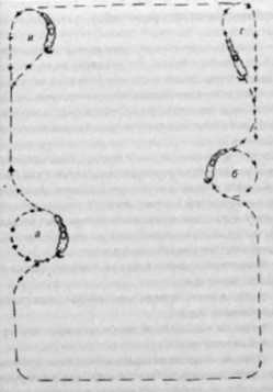 шлюс, болтающаяся нога, плавающее колено; ступня слишком глубоко вдвинута в стремя; болтающийся или. наоборот, слишком натянутый повод; высоко подняты или широко расставлены руки: напряжённость мышц всего тела (нужно уметь расслабляться); "нервный" повод за счёт дерганья руками вверх-вниз. Основные ошибки на галопе: неправильное постановление, движение контргалопом, малое давление противоположного шенкеля и слабо прижат внутренний шенкель (поэтому лошадь не согнута), сильный наклон корпуса вперёд, отставание от темпа лошади (из-за того, что корпус слишком отклонен назад, а нога впереди подпруги), неверное положение носков-пяток, рук, не работает поясница. Конечно важно, чтобы тренер вовремя поправлял всадника, но, как говорится, 'на тренера надейся, а сам не плошай!"Надо уметь и падать с лошади, не теряя при этом равновесия, то есть, перемещая в нужном направлении центр тяжести своего корпуса, Если же все-таки лошадь, споткнувшись, падает, или вы не удержались в седле, то при падении сгруппируйтесь (каждый, наверняка, в школьные годы выполнял "кувырки" на уроках физкультуры: пригнул к груди подбородок, округлил спину, руки и ноги согнуты и максимально сближены) Откатитесь в "кувырке" от падающей или споткнувшейся лошади и "пружинкой" вскочите на ноги (рис. 21) — вот оптимальный вариант при неожиданном падении.