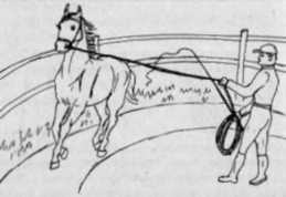 Прочная тесьма длиной 8-10 м, шириной 2 см. На корде гоняют лошадь вокруг кордового (обучающего или гоняющего лошадь на корде), учат новичков азам верховой езды, сбивают спесь с норовистых лошадей (рис. 8. б). Ваши первые уроки верховой езды тоже будут проходить на корде. Все гимнастические упражнения проводятся исключительно на корде, чтобы избежать падений и травм.