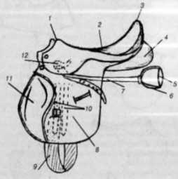 Здесь мы вам расскажем только об основных сёдлах, применяемых в конном спорте (рис. 9 — на примере троеборного седла).